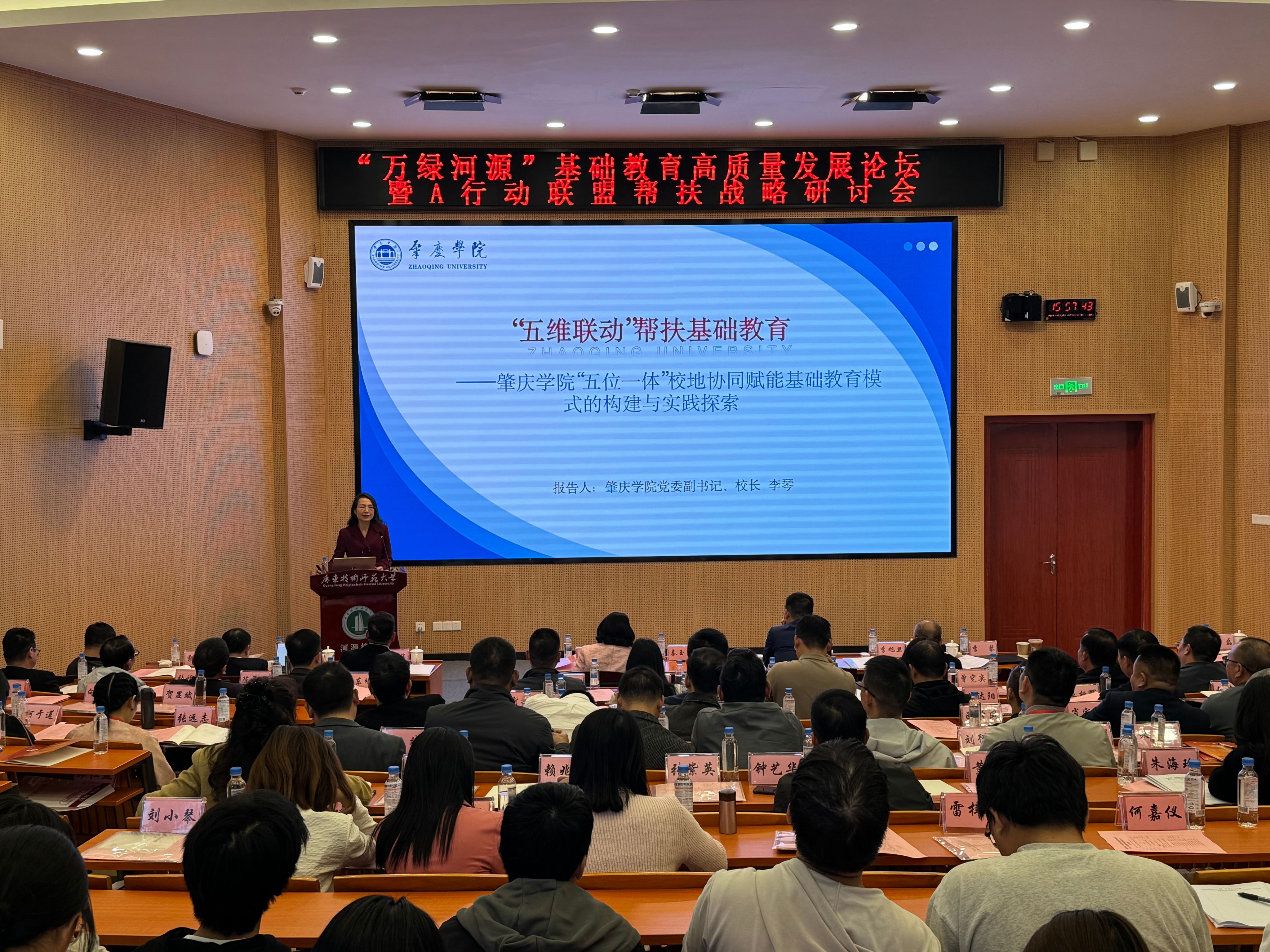 12月28日下午,我校代表参加“万绿河源”基础教育高质量发展论坛暨纵向帮扶“三所学校”A行动联盟帮扶战略研讨会。李琴以《“五维联动”帮扶基础教育——肇庆学院“五位一体”校地协同赋能基础教育模式的构建与实践探索》为题作主旨报告,系统阐释我校帮扶模式的内涵与实践路径,引发与会人员的关注与热烈讨论。