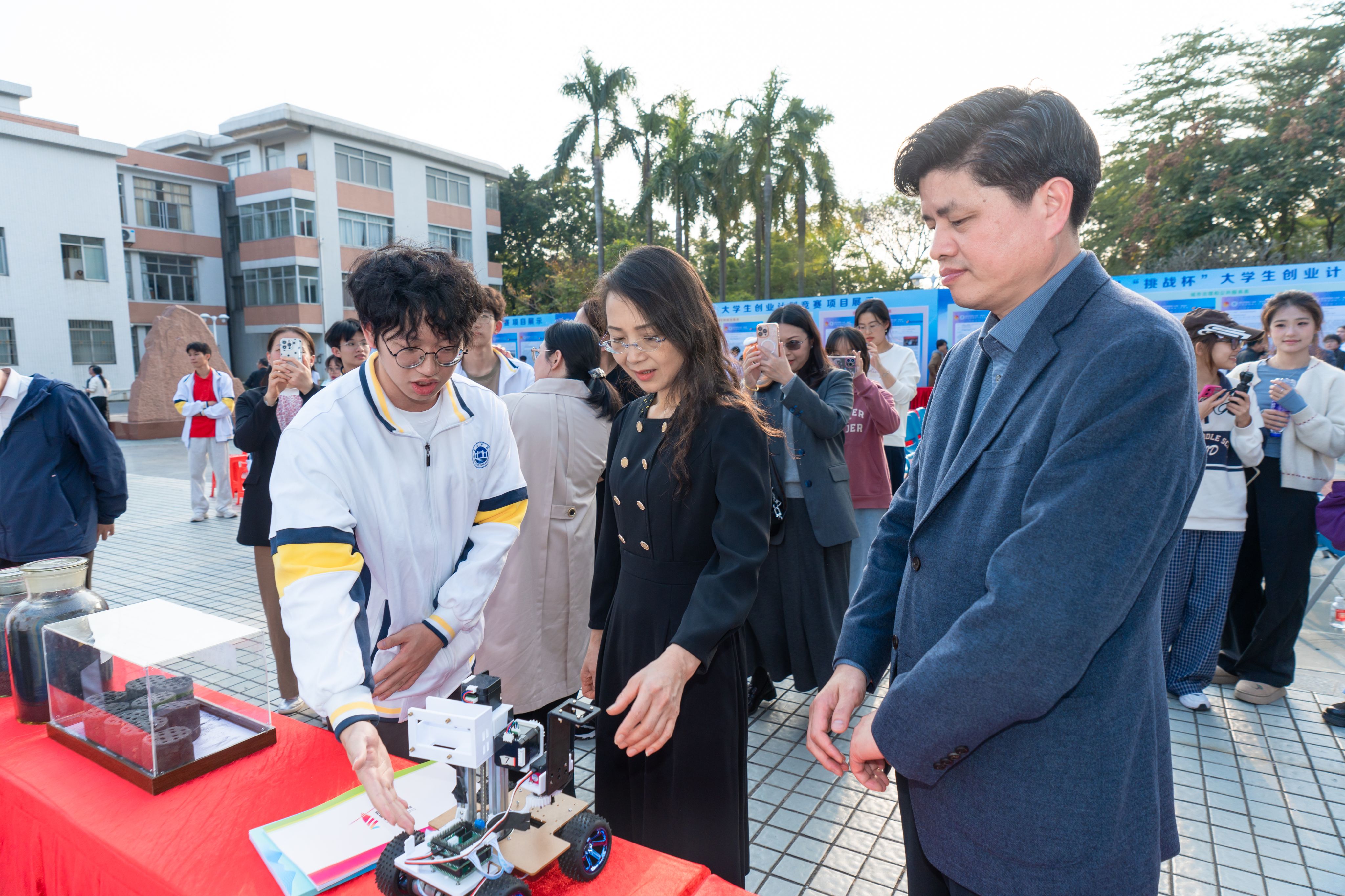 欧洪湛为获得“挑战杯”和“优创杯”称号的学院以及获得金奖的12个项目颁发荣誉证书。四个优秀作品项目在活动上进行了展示。