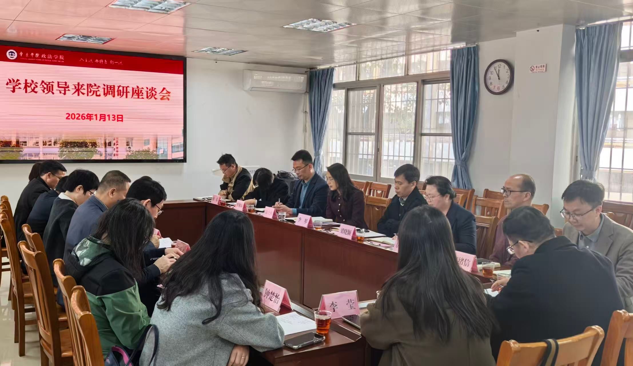 本网讯 1月13日上午,校长李琴率队赴政法学院开展专题调研并召开座谈会。学校相关职能部门负责人陪同调研。政法学院党委书记张滔华、院长许英等党政领导班子成员参加会议。会议由张滔华主持。
