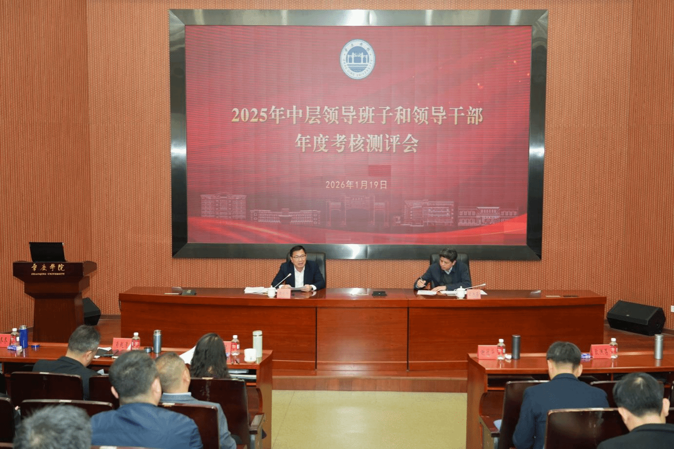 本网讯 1月19日,学校召开二级党组织书记抓基层党建工作考核测评会、2025年学校中层领导班子和中层领导干部年度考核及中层领导班子和领导干部执行党风廉政建设责任制情况考核测评会。校党委书记谢冠华,校长李琴,党委副书记欧洪湛,副校长肖起清、李新昌、唐冬冬、胡文涛,纪委书记、监察专员王克俭出席会议。会议由欧洪湛主持。