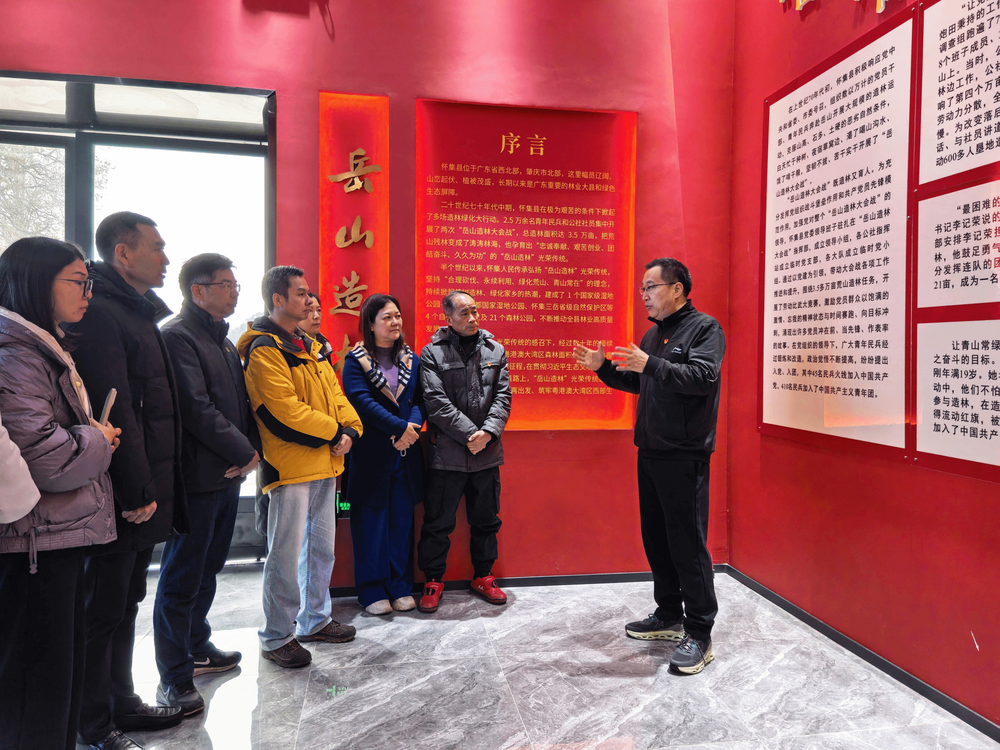 在岳山林场,全体人员认真聆听了“岳山造林大会战”奋斗历程的讲解。通过一幅幅历史图片、一段段感人故事和眼前连绵的青山,大家深刻感受到上世纪70年代怀集干部群众绿化荒山的坚韧意志与奉献精神。