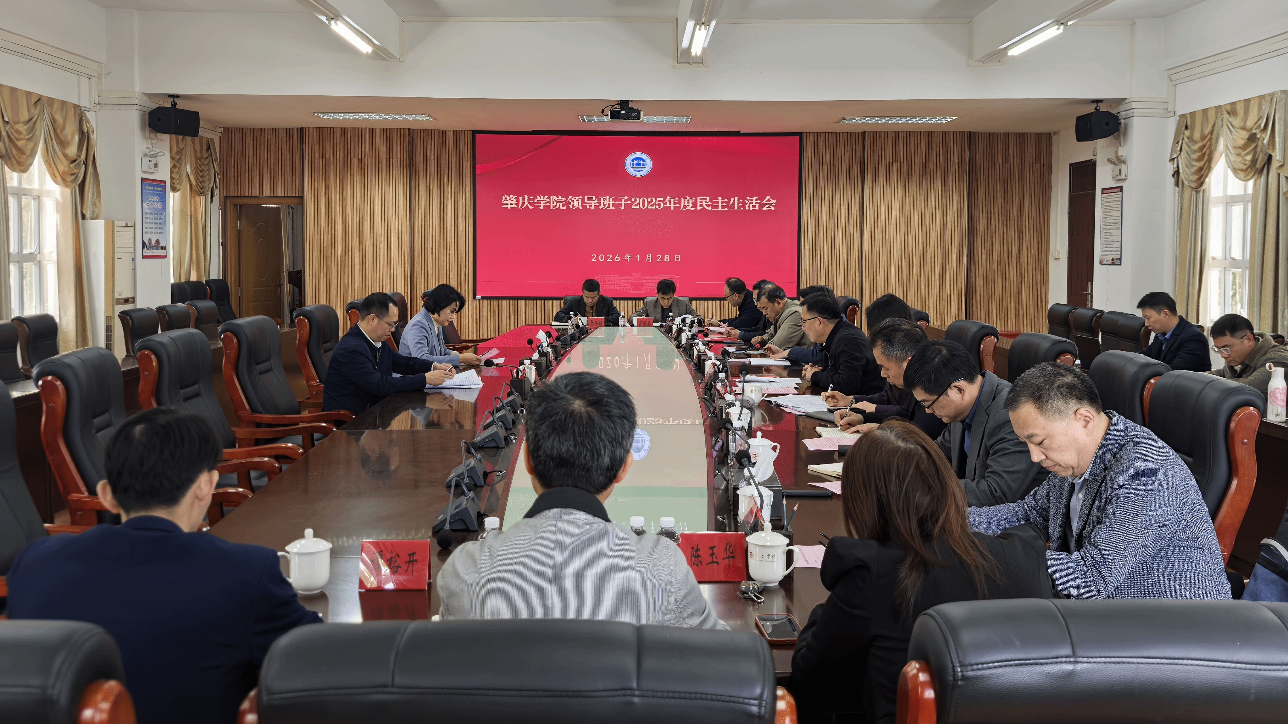 谢冠华在总结讲话中强调,2026年是实施“十五五”规划的开局之年,是教育强国建设三年行动计划承上启下的关键之年,也是学校迈向高质量发展新征程的实干攻坚年。要把这次民主生活会作为学校领导班子强化党性锤炼、提升履职本领的新起点,锚定“提升学科水平、更名大学、博士点建设”三大战略工程,落实好“实干攻坚年”各项工作举措,推动全面从严治党向纵深发展,为广东在推进中国式现代化建设中走在前列贡献肇庆学院力量。