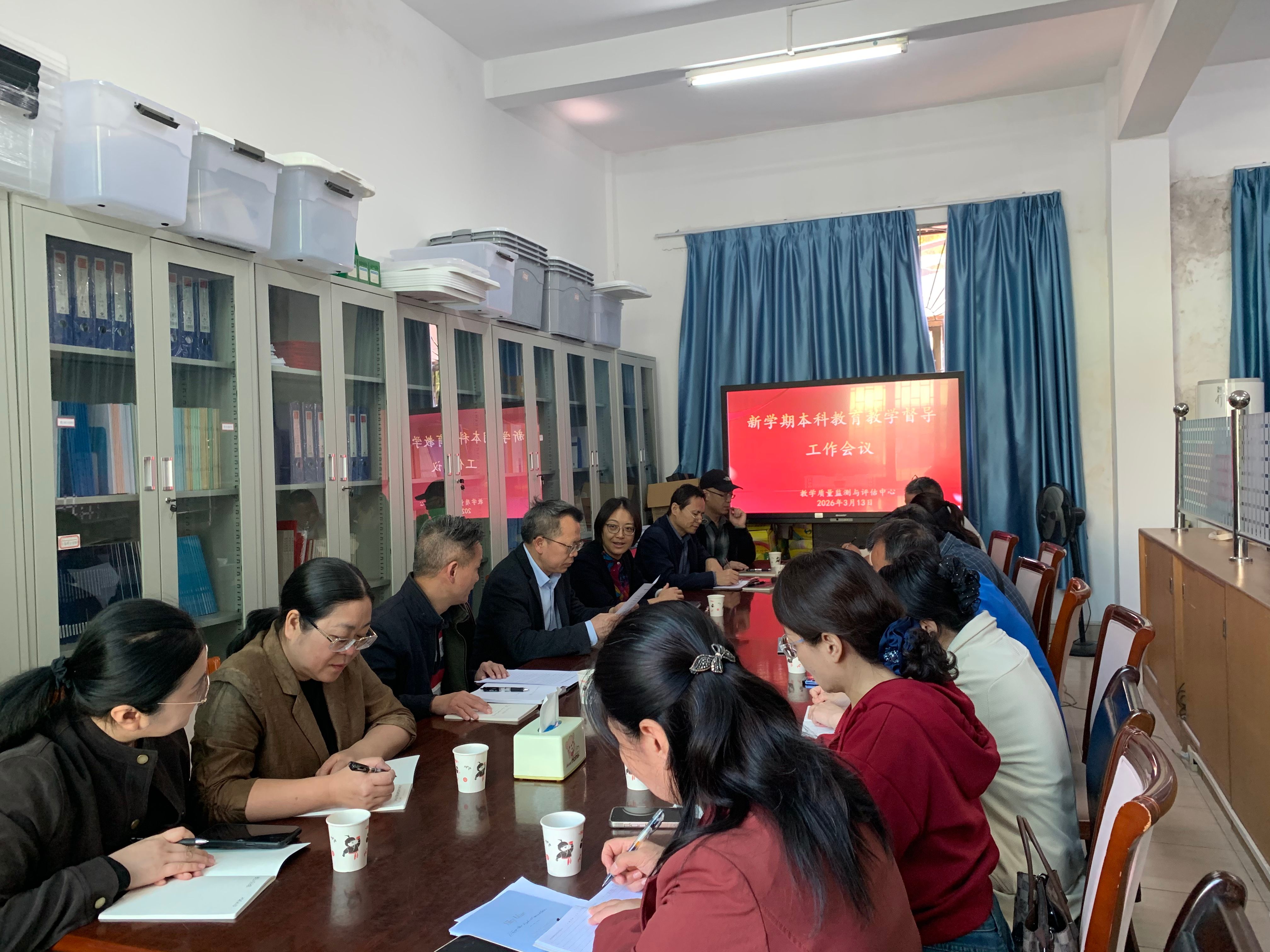 本网讯 为加强教学督导工作,进一步提升本科教育教学高质量发展,3月13日下午,学校召开新学期本科教育教学督导工作会议,副校长胡文涛出席会议,全体校级本科教育教学督导及教学质量监测与评估中心相关人员参会,李佩环主任主持会议。
