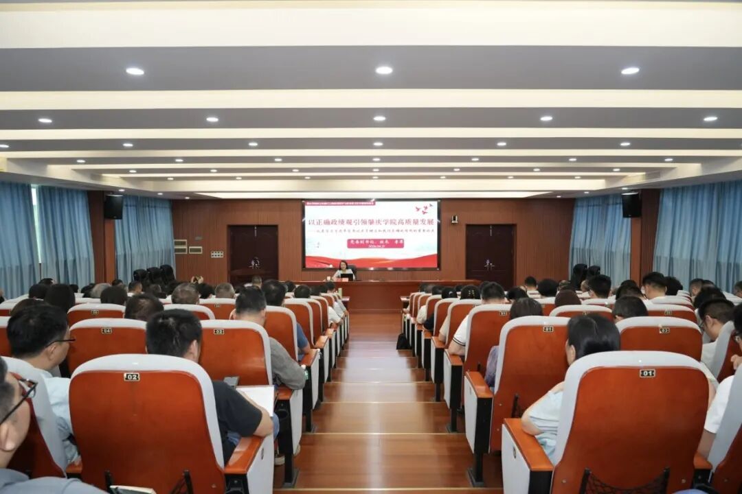 李琴指出,当前学校在办学治校中仍存在重智育轻德育、重外延轻内涵、重理论轻实效、重短期轻长远、重形式轻作风等问题,必须牢固树立和践行正确政绩观,切实转变发展理念,走内涵式、高质量发展之路。她强调,要深入领会正确政绩观核心要义,筑牢信仰之基,强化实干笃行,推动“九大工程”落地见效,以正确政绩观推动学校发展再上新台阶。