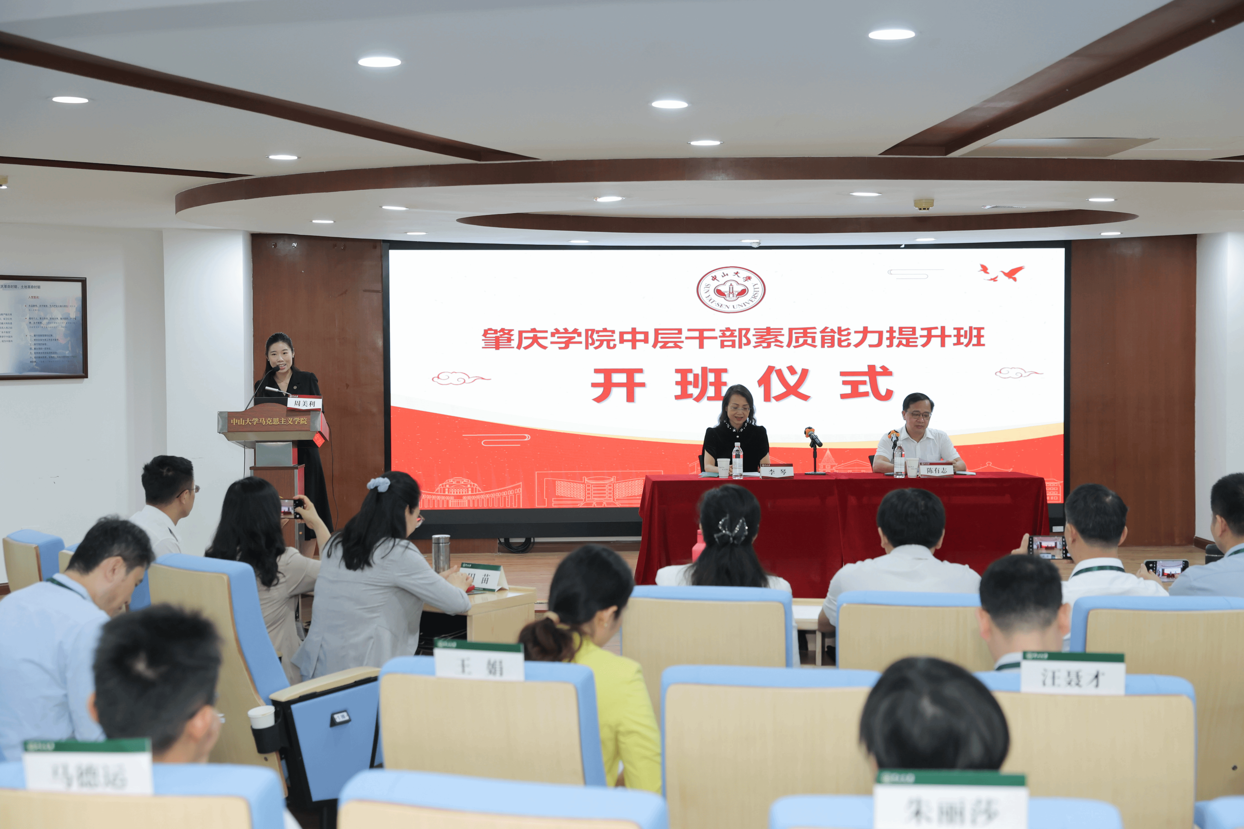 开班式上,校长李琴作开班动员讲话。她对中山大学的精心筹备表示感谢,并向学员提出三点要求:一要聚焦新时代高等教育历史使命,把本次培训作为强化履职能力的重要契机,通过学习化解“本领恐慌”困局。二要聚焦新时代好干部标准,自觉加强政治淬炼、实践锻炼与专业训练,努力提高“七种能力”“八大本领”,筑牢履职根基。三要聚焦“学思用贯通,知行信统一”要求,借鉴中大在学科交叉、产教融合等方面的先进经验,转化为推动我校学科升级、师资提质、服务地方的具体思路。