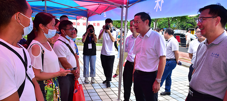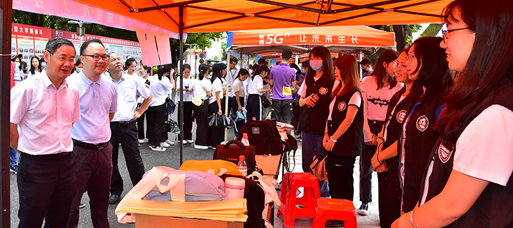 迎新中,校党委书记曾桓松,校长吴业春,校党委副书记黄劲松、谢冠华分别深入主校区和星湖校区迎新现场检查和了解迎新工作情况,问候工作人员。他们深入两个校区检查迎新工作,了解迎新各方面情况,关注新生报道动态。在校门,碰到送学生报到的家长,曾桓松、吴业春感谢家长们对学校执行疫情常态化工作措施的理解,嘱咐工作人员关注新生需求,以最大的热情、最好的服务做好迎新工作,向新生展示我校良好形象。