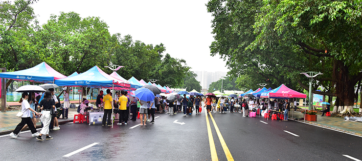 早上天光微亮,我校主校区和星湖校区的迎新工作人员已坚守在岗位上,开启紧张忙碌的工作步调。在当天报到高峰时段,工作人员和志愿者更是忙个不停,他们热情走上前去引导新生、询问所需,很多工作人员甚至顾不上吃午饭。“同学,你好,请问你是哪个学院的,我带你去报到点。”“同学,来,我帮你拿行李。”尽管天空时而飘起阵雨,为迎新工作带来不便,但工作人员和志愿者们迎难而上,以饱满的姿态、热情的服务为新生做好全方位服务,帮忙提行李、解答各类问题,把浓浓暖意送到新生心坎里。现场,我校还设置专车帮助行李多的新生运送行李,减少他们奔波的劳顿。夜幕降临,迎新工作人员和志愿者仍然做好迎新值守。