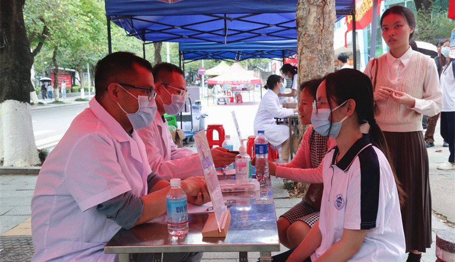 本次活动包括讲座及义诊两项内容。中山三院感染科(肝内科)主任医师郑玉宝为师生带来题为“消除肝炎,防治肝硬化及肝癌/远离毒品防肝炎”的讲座,向同学们介绍了正常肝脏的生理功能、防治病毒性肝病和肝硬化等常见肝脏疾病的方法,同步进行禁毒科普培训。来自中山三院感染科(肝脏内科)、胃肠外科、神经内科、泌尿外科、消化科、儿科、检验科的医生在紫荆校道开展义诊活动,为师生排疑解惑。