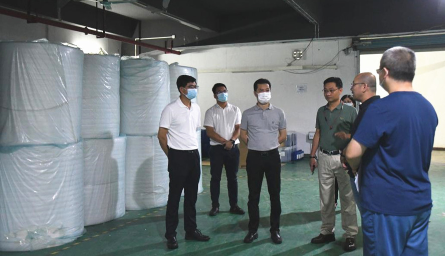 李剑听取创新创业中心建设发展历程、孵化服务体系、平台建设成就及未来发展规划等情况汇报,重点参观今年新入孵并获国家高企认定的肇庆市联丰电子科技有限公司等园区企业,并与部分企业家就强化政府服务职能,发挥园区平台作用,全力抗击疫情、恢复生产等工作进行了交流。