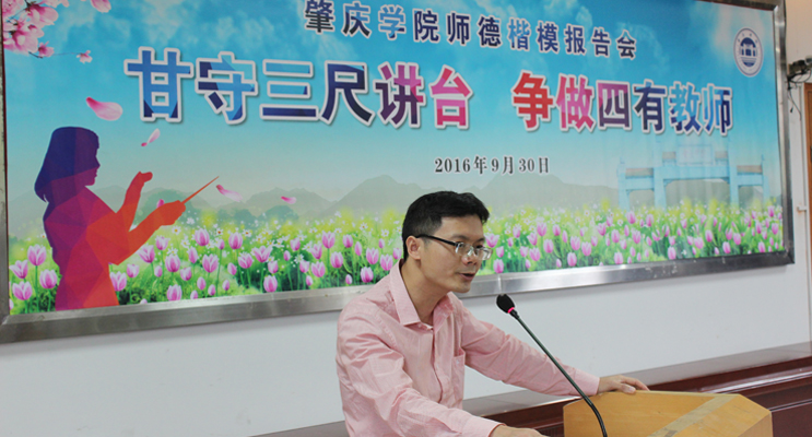 本网讯 9月30日,我校举行以“甘守三尺讲台,争做四有教师”为主题的师德楷模报告会,张新安、黎保荣、周丽和侯晓辉等四名优秀教师应邀分享对“师德”的看法,充分展示爱岗敬业、为人师表的形象和风采。宣传部、工会等部门负责人,各二级学院师生代表出席活动。