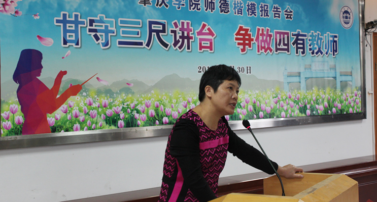据了解,为进一步做好本科教学审核评估迎评工作,加强师德建设,努力建设一支师德高尚、结构合理、业务精湛、充满活力的高素质教师队伍,我校从9月中旬开始,以“甘守三尺讲台,争做四有教师”为主题,开展为期三个月的师德建设教育活动。本次师德楷模报告会,系师德建设教育活动的重要内容之一。