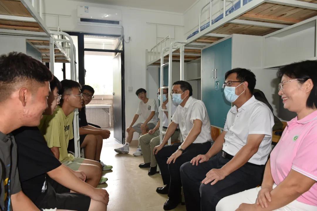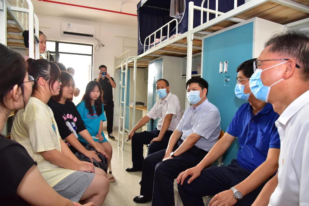 校领导曾桓松、吴业春、谢冠华、李新昌、唐冬冬到校门口检查工作情况并深入宿舍和新生亲切交谈,他们勉励新生珍惜青春时光,好好利用学校资源成长为可担重任的时代新人。