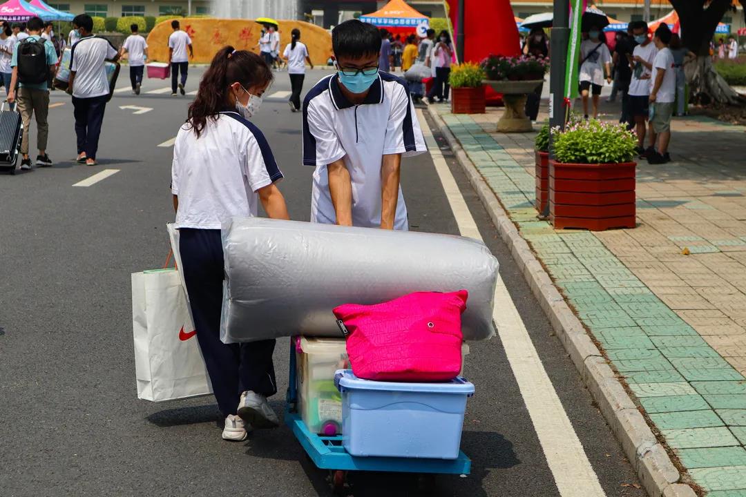 正午至,烈日灼灼,暑气蒸腾。新生在志愿者们的引导下,在学校安排的行李搬运车的帮助下,陆续进入宿舍,未来的四年,这里就是你们的家。