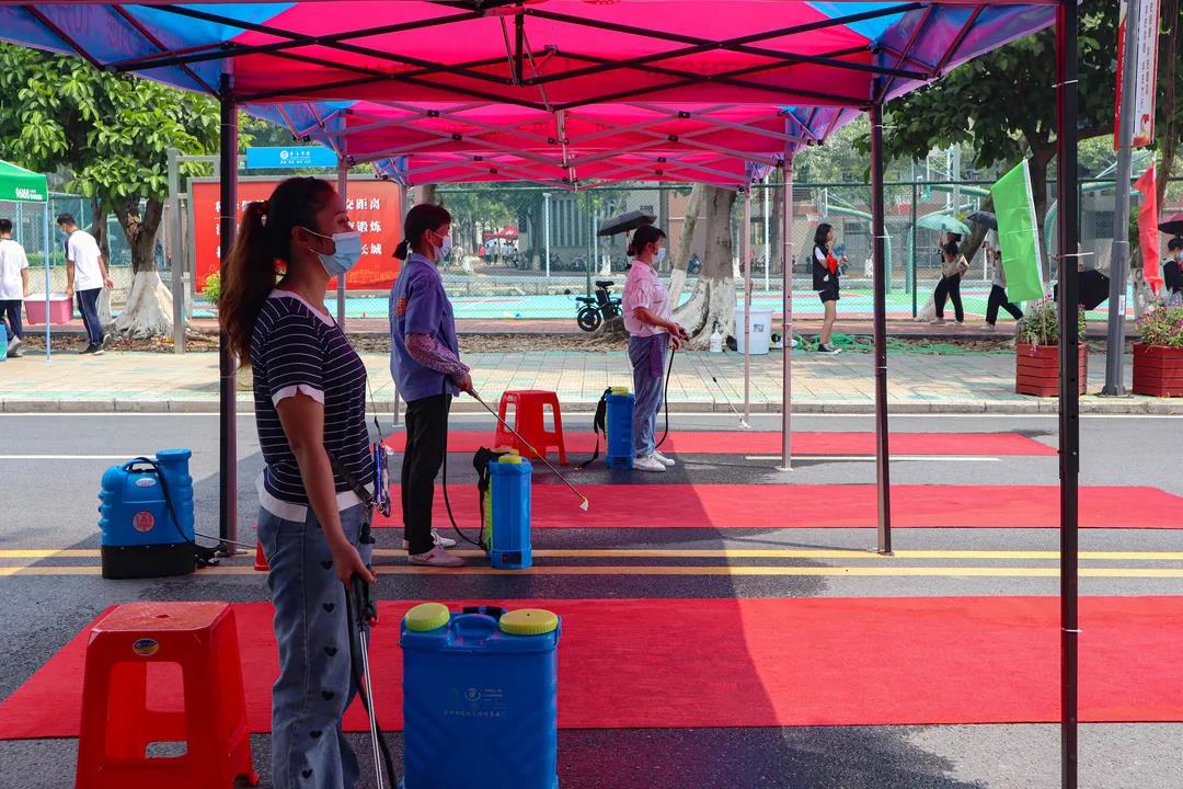 疫情仍未结束,防控不能放松。新生到校手续的第一步便是防疫关,更换口罩、检验入校码、给行李消毒,机关党员与学生志愿者耐心引导新生完成相关手续,共同筑就砚园的安全防线。