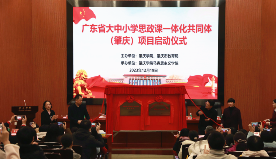 仪式上,广东省大中小学思政课一体化共同体(肇庆)和广东省大中小学思政课一体化建设研究中心(肇庆)揭牌。