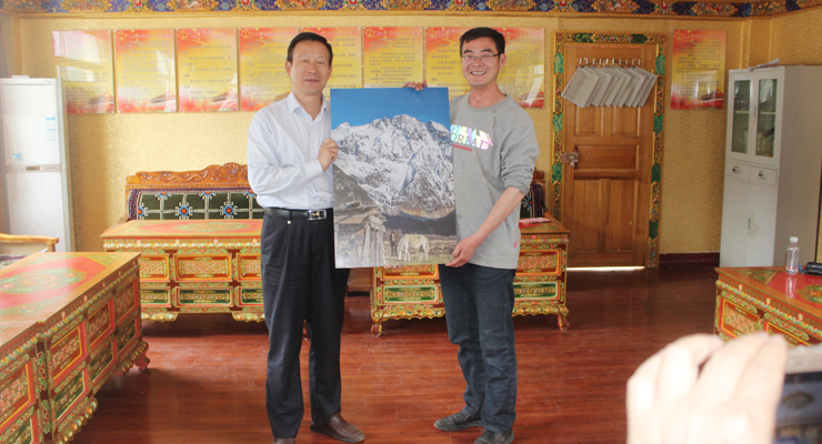 朱拉乡乡长周裕泉向学校赠送代表本乡特色的纪念品,欢迎有志于服务西藏建设的大学生扎根到美丽的乡村