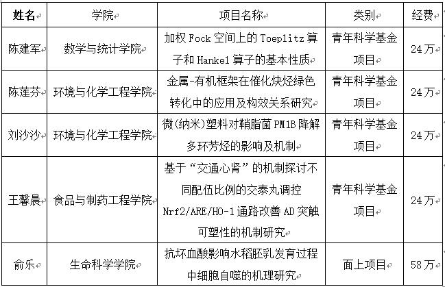本网讯 近日,国家自然科学基金委公布了2020年度国家自然科学基金项目立项资助情况,我校5个项目获批资助,其中,面上项目1项,青年项目4项,直接经费154万元,立项数较去年增加4项,在省内同类院校名列前茅。