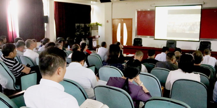 校党委书记曾桓松(中)作动员讲话和工作部署