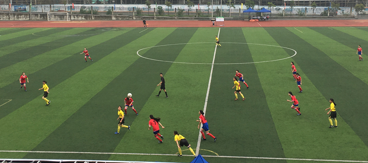 本次足球赛安排在我校进行的场次一共有11场。当天上午8:40,第一场比赛正式展开,比赛双方分别为来自广宁县和封开县的两支中学生队伍。同学们在场上相互角逐,展示了力争上游、永不言败的精神面貌。
