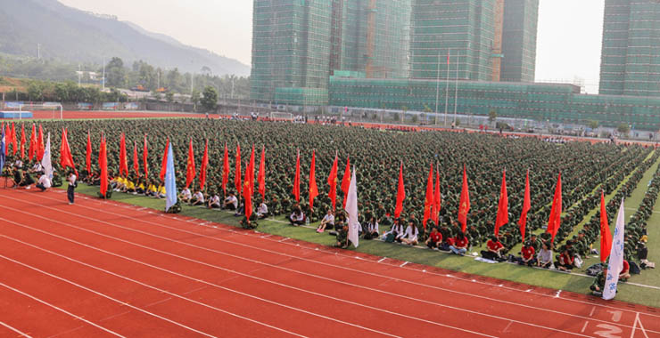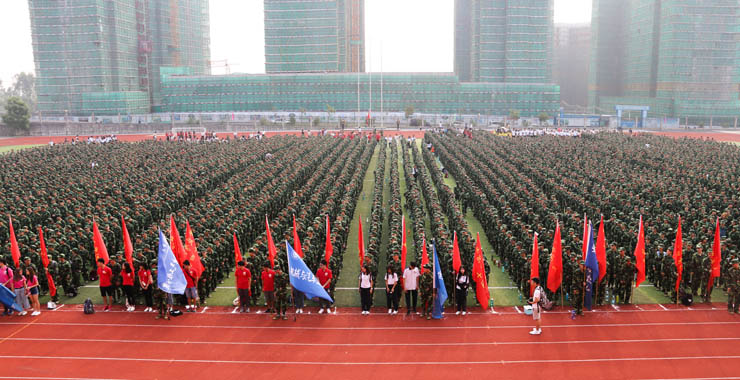 本网讯 朝阳灿烂,晨风习习,北岭挺俊,9月18日早上,我校2017级新生开学典礼暨军训动员大会在第二运动场隆重举行。6000多名着装整齐的新生飒爽英姿,精神抖擞,聆听学校领导的谆谆教导,以昂扬的姿态投入即将到来的军训生活中。