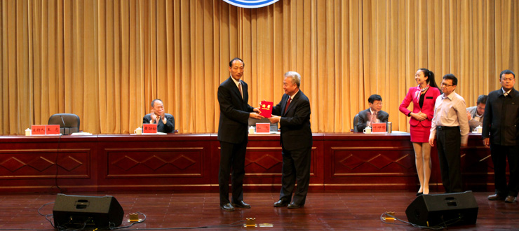 本网讯 12月21日,我校隆重召开第五届学科建设与科研工作会议暨表彰大会,校长和飞,校党委副书记叶峥嵘、黄劲松,副校长王忠、周苏平等校领导,校党委委员,副科级以上干部,全体教师,各二级学院学生代表,校地合作企业代表出席大会。王忠主持。