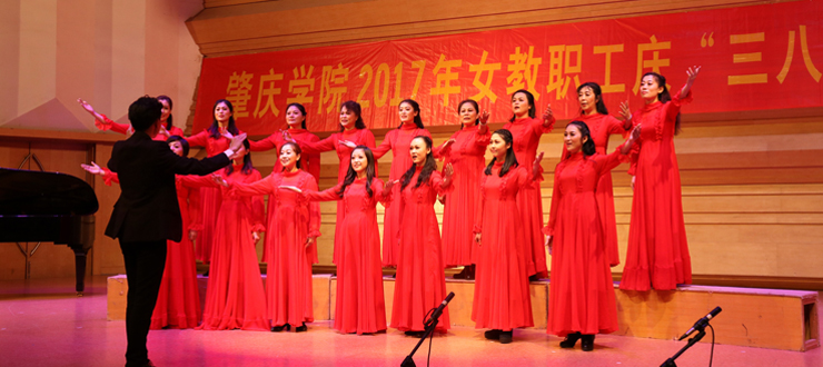 本网讯 为庆祝一年一度的国际妇女节,展示我校女教职工巾帼风采和砚园人积极向上、奋发有为的精神面貌,3月8日下午,由校工会、校女教职工委员会联合举办的“唱响砚园 放飞梦想”女教职工歌咏比赛在音乐厅上演。校党委书记曾桓松、校党委副书记兼校工会主席黄劲松、肇庆市教科文卫工会主席刘晓霞等领导出席活动。