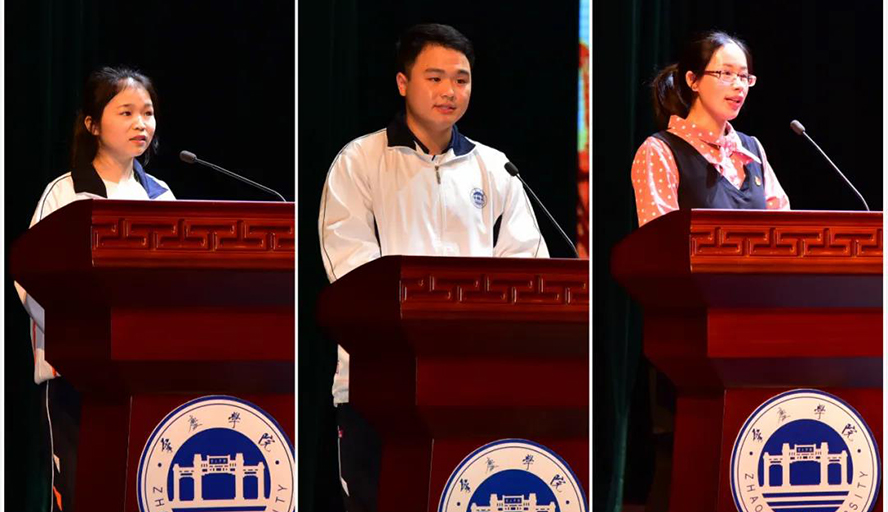 国家奖学金获得者代表、生命科学学院17生物技术1班李顺媚同学,先进班集体代表、旅游与历史文化学院18历史1班邵俊涵同学,获奖教师代表、数学与统计学院辅导员唐艳秋分别作了发言,表达了积极向上、奋发有为的情怀和珍惜荣誉、努力争取更大成绩的决心。