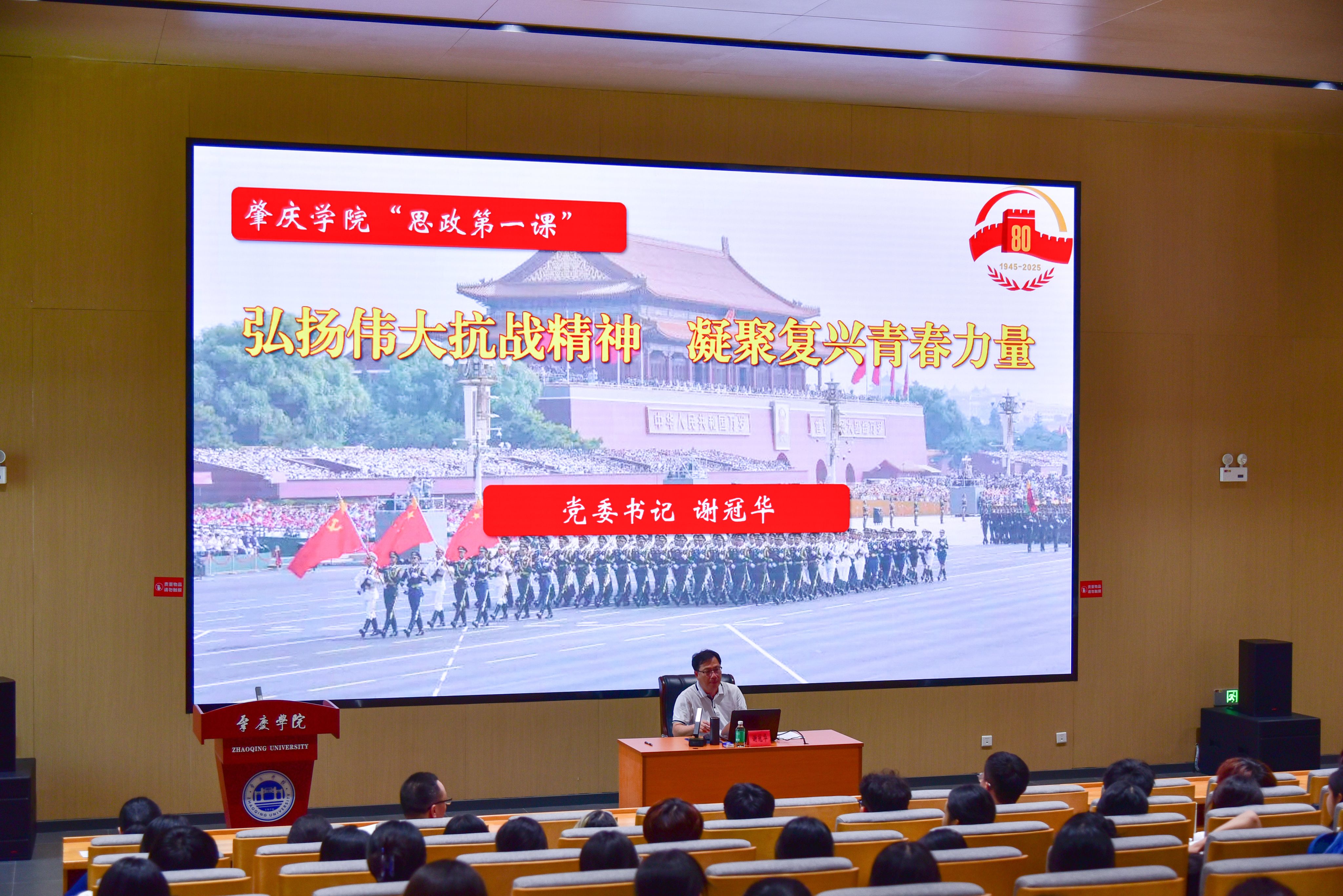 10月10日,谢冠华以《弘扬伟大抗战精神 凝聚复兴青春力量》为题,在新校园学术报告厅为青年学子授课。他深入阐释了习近平总书记在纪念抗日战争暨世界反法西斯战争胜利80周年大会上的重要讲话精神。他鼓励同学们一要做不忘历史,传承精神的“守护者”;二做热爱祖国、奉献青春的“奋斗者”、做胸怀世界,热爱和平的“实践者”;三要做脚踏实地,锻造本领的“逐梦者”,心怀“国之大者”,珍爱和平,胸怀复兴伟业,以实际行动践行伟大抗战精神,为强国建设、民族复兴伟业作出新的更大贡献。