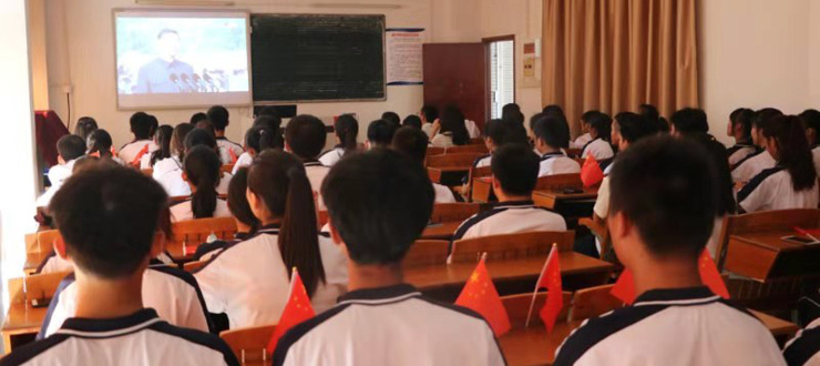 我校师生集体观看新中国成立70周年阅兵和群众游行直播