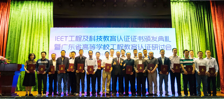 会上,IEET认证委员会主任林聪明为广东高校通过工程及科技教育认证的25个首批试点专业颁发证书。我校食品与制药工程学院院长汪洪武、计算机科学与软件学院院长邵平、教务处副处长李妍等参加了授证仪式。省教育厅高教处处长郑文作《基于专业认证的人才培养机制设计》的报告,阐明了开展专业认证对高校加强专业建设、提高应用型人才培养质量以及推动人才培养机制所具有的推动作用。