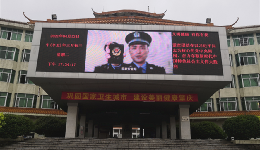 进入“全民国家安全教育周”,我校在行政楼LED大屏幕滚动播放2021年第六个全民国家安全教育日宣传视频和全民国家安全教育日主题宣传海报,并在主校道悬挂国家安全观横幅标语,营造全民国家安全日法治宣传浓厚校园氛围。