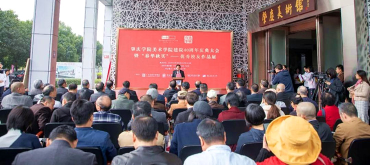 吴业春在致辞中表示,美术学院庆祝建院四十周年的系列活动,拉开了肇庆学院庆祝建校五十周年的序幕。通过总结办学成果,将推动美术学院办学事业迈上新台阶,为我校设计学申报硕士学位授予权奠定坚实的基础。他希望美术学院的全体师生和校友以此为契机,坚守初心,牢记使命,为广东美术教育事业作出新的更大贡献。
