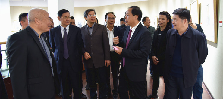 23日上午,美术学院建院40周年庆典大会暨“春华秋实”——优秀校友作品展在美术馆前举行。中国美协副主席、广东省文联主席、广东省美协主席、广东画院院长、广州美院院长、我校美术学院名誉院长李劲堃,中国美协理事、广东省美协专职副主席兼秘书长王永,我校党委书记曾桓松,主持行政全面工作副校长吴业春,党委副书记黄劲松、谢冠华,校长助理黄金等校领导出席,广州美术学院、省内部分院校美术学院院长,市教育部门代表,市美协、书协、文联部门代表,艺术家、校友、师生代表参加。谢冠华主持开幕式。