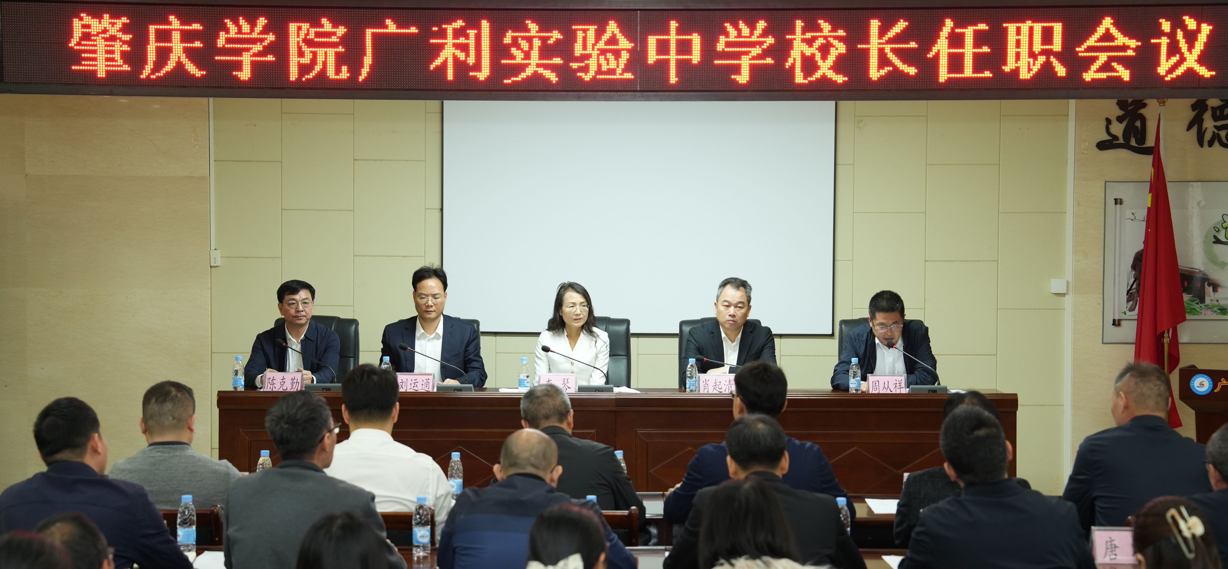 本网讯 11月3日,肇庆学院广利实验中学新校长任职会议在广利实验中学会议室召开,肇庆学院校长李琴、副校长肖起清,鼎湖区委书记刘运通、鼎湖区委常委周从祥出席会议,鼎湖区相关部门领导、学校相关部门主要负责人、肇庆中学校长杨荣、宣卿中学校长李小徐、广利实验中学新校长陈克勤、音体美学科首席专家、广利实验中学全体教师参加。