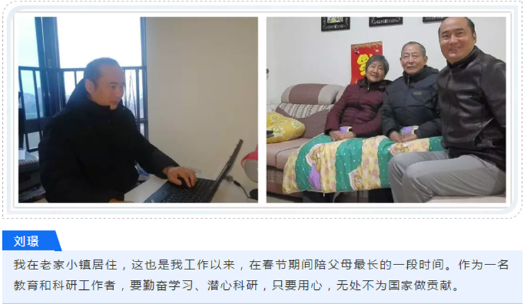 上周开始,刘璟通过网络指导学生学习。他提醒学生们在家要保持合理的生活作息,劳逸结合,科研工作和防疫工作两不误。