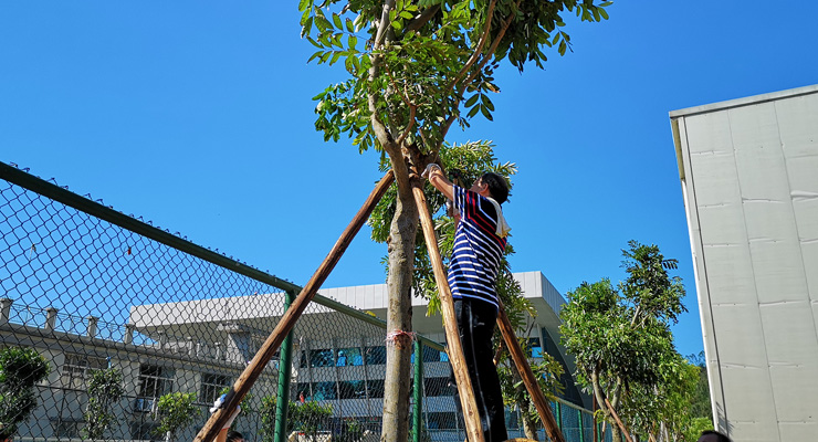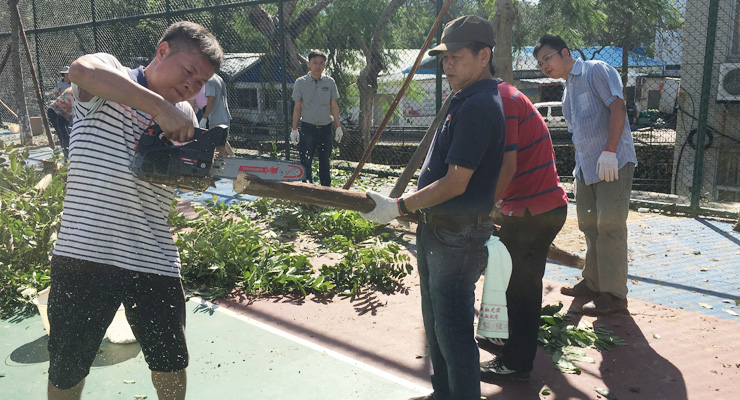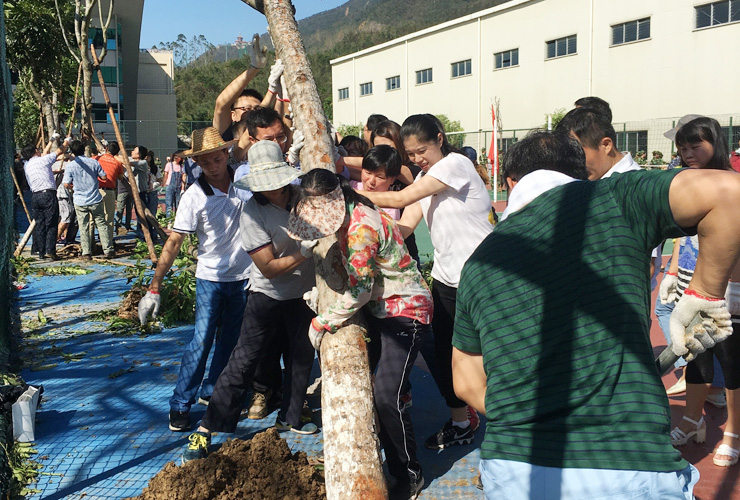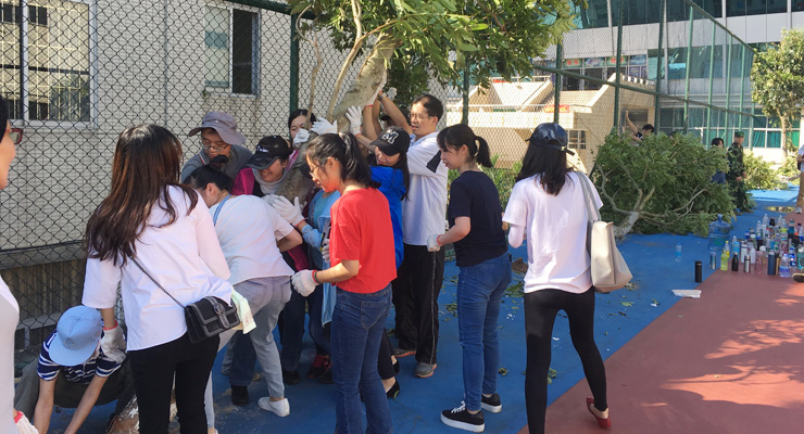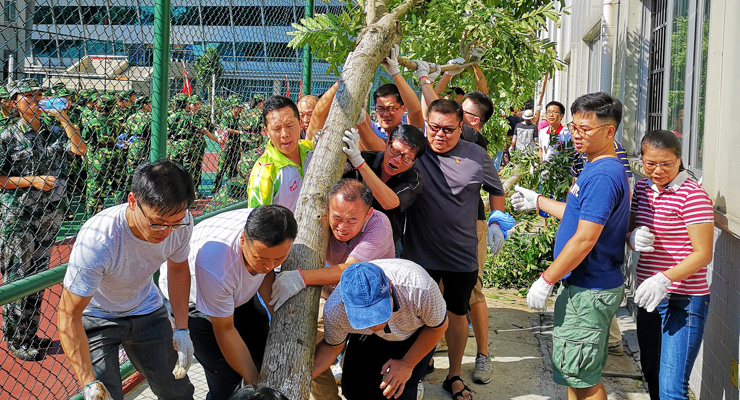 此前,超强台风“山竹”以远超预期的威力一路杀进校园,给校园造成极大的破坏。扶正、种好被风刮倒的树木,是灾后重建的其中一项紧迫任务。在学校的统一调度下,机关成为承担这项任务的重要力量之一。