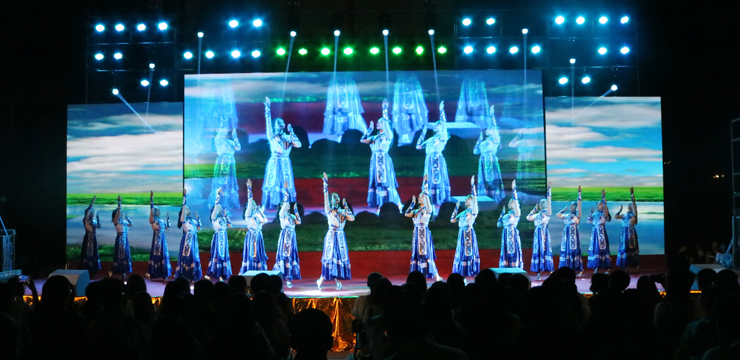 晚会由美丽的砚园、梦想在飞翔与庆祝党的十九大三个篇章组成,共上演13个节目。