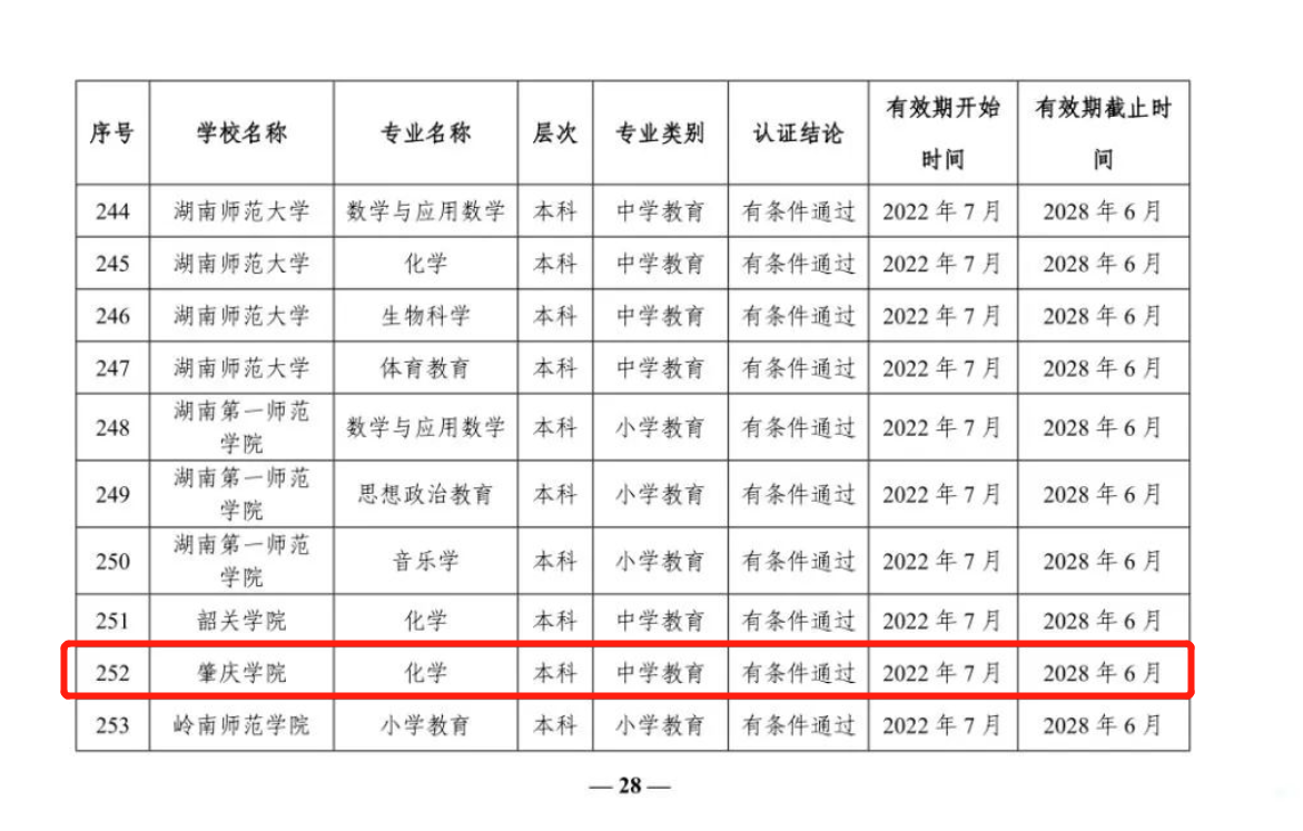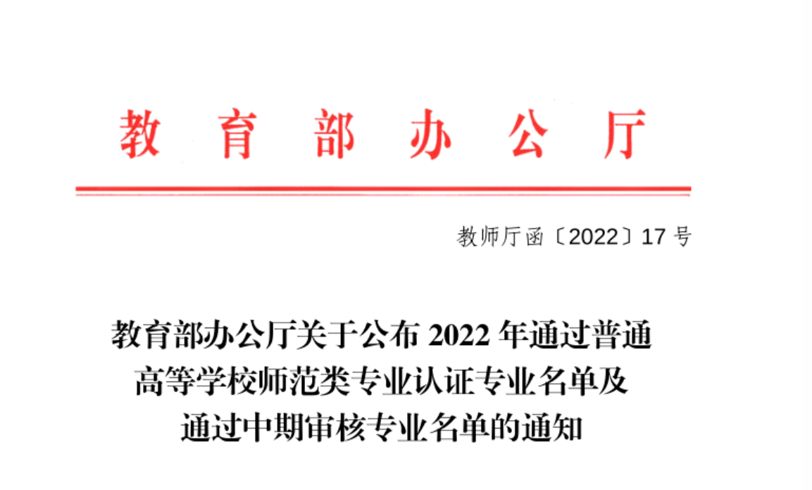 本网讯 近日,教育部办公厅公布2022年通过普通高等学校师范类专业认证的专业名单,我校环境与化学工程学院化学专业在列,认证六年有效期为2022年7月至2028年6月。
