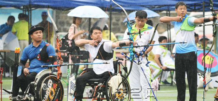 从8月28日开始的射箭比赛在第二运动场举行,一共进行了为期三天的比拼。射箭比赛共分为反曲弓男(女)子公开级个人70m单轮、双轮、淘汰赛,复合弓男(女)子公开级个人50m单轮、双轮、淘汰赛,复合弓男(女)W1个人50m单轮、双轮、淘汰赛,反曲弓公开级混合团体70m淘汰赛,复合弓公开级混合团体50m淘汰赛,W1复合弓混合团体50m淘汰赛等环节。最后,东莞队以10金7银3铜的优异成绩位居奖牌榜首位,并以总分129分获得团体总分第一名。