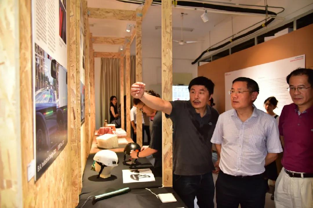 本网讯 为展现中德合作办学的创新教育成果和应用型实践能力,5月17日下午,中德设计学院首届毕业生作品展在艺术大楼正式开幕。校长吴业春,原校长、中德设计学院院长和飞,副校长林俊睦等学校、学院领导以及相关部门负责人出席开幕式并观展。中德设计学院德方院长梅纳特及学院德方教师通过视频连线形式参加。