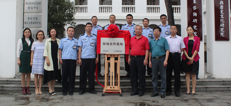 本网讯 5月9日,副校长王忠、肇庆监狱政委吴伟和在我校共同为双方产学研合作基地揭牌。根据协议,双方在深化继续教育、科研与成果转化、历史文化传承、党建宣传交流等方面开展合作。科技处、社科处、校地合作处处长胡海建,团委书记肖俊霞、政法学院院长祈建平出席活动。