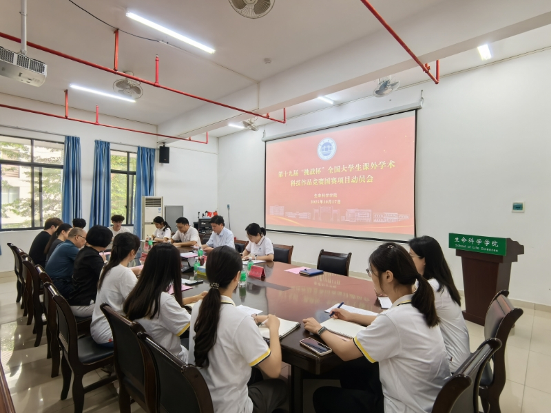 10月17日上午,我校召开第十九届“挑战杯”全国大学生课外学术科技作品竞赛终审决赛赛前动员会。校党委副书记欧洪湛出席会议并讲话,校团委、生命科学学院相关负责同志、参赛团队指导教师和学生参加会议。