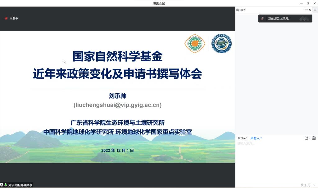 刘承帅从申报政策变化、相关学科主要数据、申请书撰写注意事项等三方面展开汇报,介绍并分析了国家自然科学基金近年来的政策变化、国家自然科学基金申请过程中的注意事项,在选题的原则、题目的摘要表达、理想依据、研究内容等九个方面进行详细的分享和指导。
