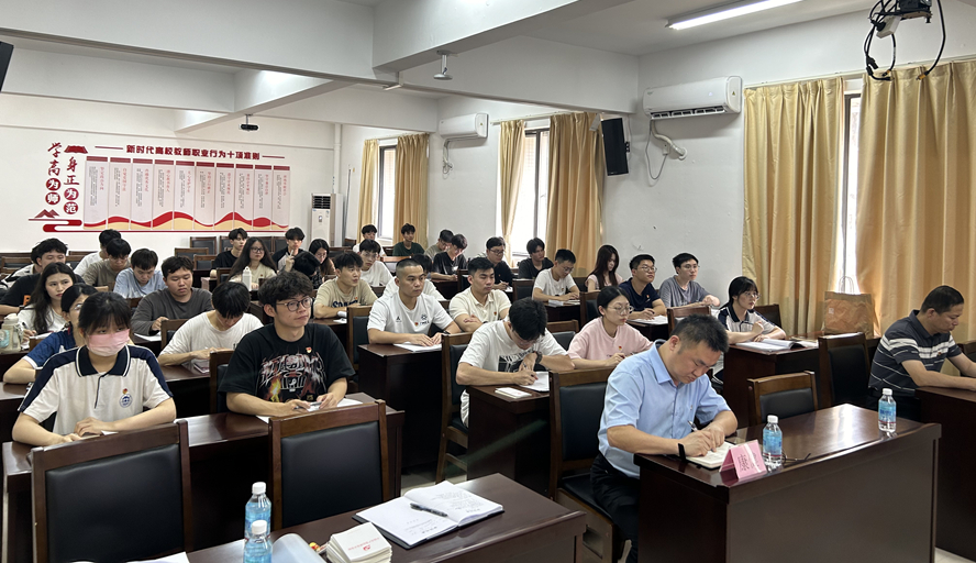 讲座深入解读了2024年全国两会政府工作报告,并运用大量的数据进行对比分析,全面回顾了2023年全国、广东省及肇庆市的政府工作成果,并对2024年经济社会发展的总体要求和政策取向及工作任务进行了详细阐述,特别讲解了新质生产力的概念,并探讨了如何通过科技创新提升新质生产力。结合当前党纪学习教育要求,唐冬冬解读《中国共产党纪律处分条例》主要内容和新修订情况,引导广大党员同学进一步学纪、知纪、明纪、守纪,要求全体党员要坚持逐章逐条学,要准确掌握其主旨要义和规定要求,进一步明确日常言行的衡量标尺。
