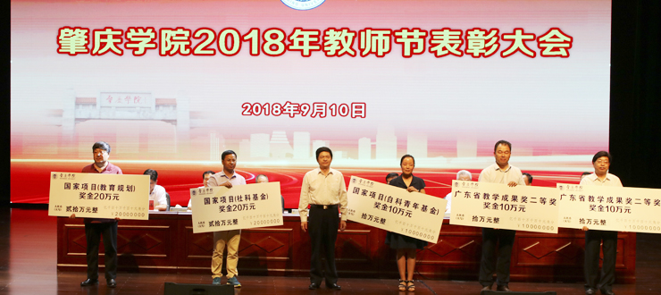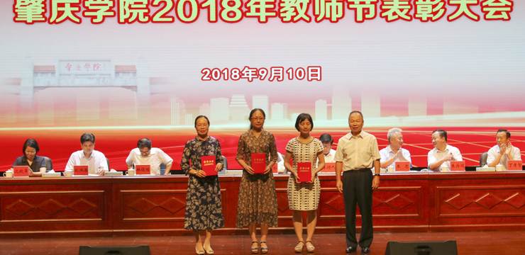 大会上,“申硕工程特别奖”“优秀教学成就奖”“南粤优秀教师”“肇庆市师德标兵”“肇庆学院2017-2018学年度教学名师奖”“肇庆学院教学质量十佳教师”“肇庆学院青年教学质量十佳教师”“肇庆学院实践教学优秀指导教师奖”“肇庆学院优秀实验室管理干部及优秀实验员”“肇庆学院优秀实验室管理单位及优秀实验室”“成人高等教育教学、管理和服务育人优秀奖”等优秀单位和个人上台接受表彰。