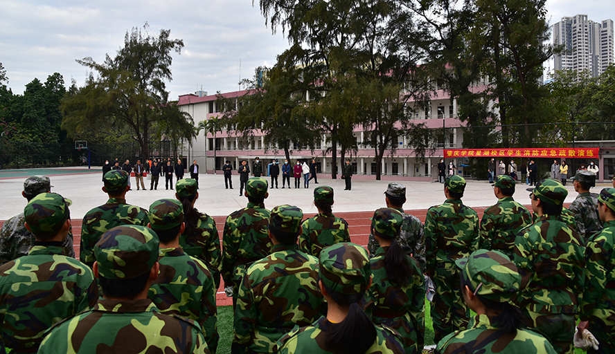本网讯 为增强大一新生的消防安全、防震减灾能力, 1月5日,我校结合军训工作计划,在星湖校区组织部分二级学院新生举行消防应急疏散演练活动。