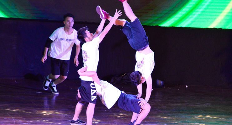 在第三篇章,独唱《海阔天空》、乐队演奏《bangbang》、健美操《驿动与飞扬》等节目,充分表达了学子求学砚园,放飞梦想的豪迈与抱负。在节目的高潮处,台下观众跟随歌曲节拍合唱互动,“海阔凭鱼跃,天高任我飞”的壮志升腾在学子心中,全场气氛此起彼伏,涤荡人心。