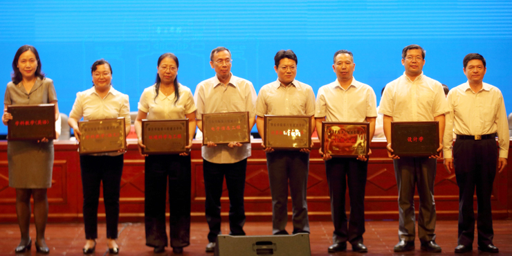 动员会上,学校向第六轮重点学科颁发牌匾、证书,并颁发2016-2017年优秀科研成果奖、科研十佳奖、陈伟南科研奖,以这种授牌、表彰的方式,激励各单位、全体教职员工聚焦申硕工作,为申硕工作奉献智慧和力量。