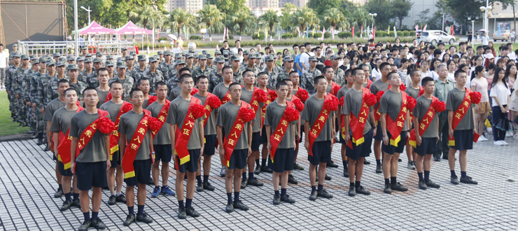 本网讯 9月6日,我校在国砚广场举行2019年新兵入伍欢送仪式。校党委副书记谢冠华、端州区人民武装部部长李帆出席,相关职能部门、各二级学院相关负责人参加。武装部部长黄镜辉主持仪式。