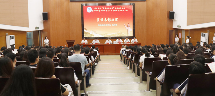 本网讯 9月4日,我校举行“青春告白祖国”主题教育活动暨2019年学生带班党员工作总结与聘任大会,大会将“青春告白祖国”主题活动与带班党员表彰聘任相结合,展示学生带班党员群体积极向上的精神风貌,引领青年学子不忘初心,牢记使命,以青春献礼祖国。